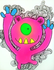 Tony’s gallery is delighted to present ‘Bortusk took a trip’, the first solo show by UK artist Bortusk Leer. Since bursting onto the art scene in 2007, Bortusk’s naively spray-painted and marker penned monsters have become a common sight on the streets of London and New York. For the inaugural exhibition at Tony’s, Bortusk Leer will present a site-specific installation alongside a selection of recent paintings and sculptures.