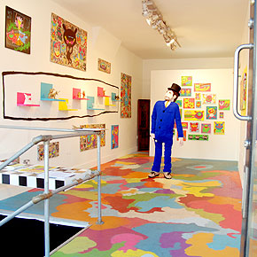 ‘Bortusk took a trip’ invites the viewer into the inner reaches of Mr. Leer’s psychedelic mind and takes you back to the fun and carefree days of our childhood. Transforming the gallery space into his private playground, we are invited to experience it as an opportunity to step out of the doom and gloom of our daily routines. An exhilarating mixture between a funfair, cartoon and rave party feel, the show’s only intention is to put a smile on your face and brighten up you day!